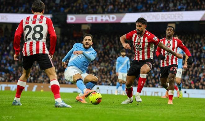 第30分钟,曼城左路压上,多库带球到禁区边上回传,谢尔基角上接球策应内切后再回传中路,迪亚斯禁区弧顶前接球调整2步突然超远距离大力抽射,皮球直挂球门左上死角,曼城1:0首开纪录。仅仅4分钟后,曼城右侧角球机会,福操刀主罚兜传门前,格瓦迪奥尔小禁区内一步高高跃起强力头槌攻门,皮球应声入网,曼城4分钟连进2球2:0领先。易边再战曼城依然稳稳压制桑德兰,第51分钟,曼城左路快速反击,多库带球突入禁区摆脱防守后右脚大力兜射,BOOM的一声皮球被远端门柱挡出。